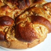 A sweet bread with apples and cinnamon throughout, baked in a circular “loaf” Yield: 1 huge loaf Ingredients: Dough ingredients: 1 cup warm water (110 degrees F)1/2 cup sugar1/2 cup oil or melted butter2 eggs2 teaspoons vanilla2 1/2 teaspoons salt1/2 teaspoon cinnamon2 tablespoons dry yeast5 to 6 cups flour Apple… Read more »