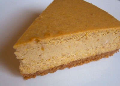 A creamy spicy pumpkin cheesecake with graham cracker crust