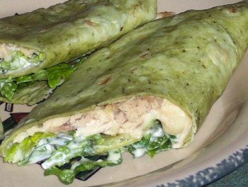 6. To serve, drizzle sour cream over the top of the pizza.* Sprinkle on lettuce, cheese, tomato, and black olives. Slice into 12 slices.