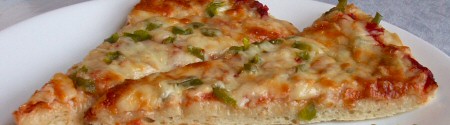 A soft homemade pizza crust topped with pizza sauce, seasoned ground beef, and shredded cheese; baked and served with sour cream, lettuce, cheese and tomatoes