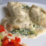 Manicotti pasta with a cheesy spinach filling, topped with a white cheese sauce and baked Yield: 4 servings Ingredients: 8 ounces manicotti pasta*9 ounces fresh spinach leaves, coarsely chopped OR 10 ounces frozen spinach, thawed2 tablespoons butter1/4 cup chopped onions or sliced green onions1 clove garlic, minced2 tablespoons flour1 1/3… Read more »