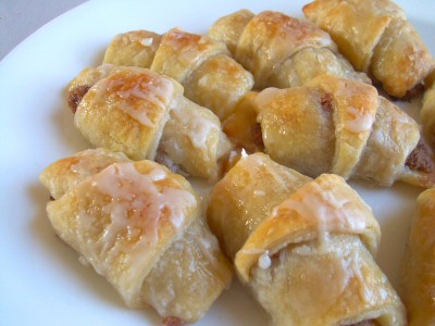 6. While butterhorns are baking, mix icing ingredients in a small bowl, until smooth. When butterhorns are finished baking, remove to a cooling rack and use a fork to drizzle icing over hot pastries.